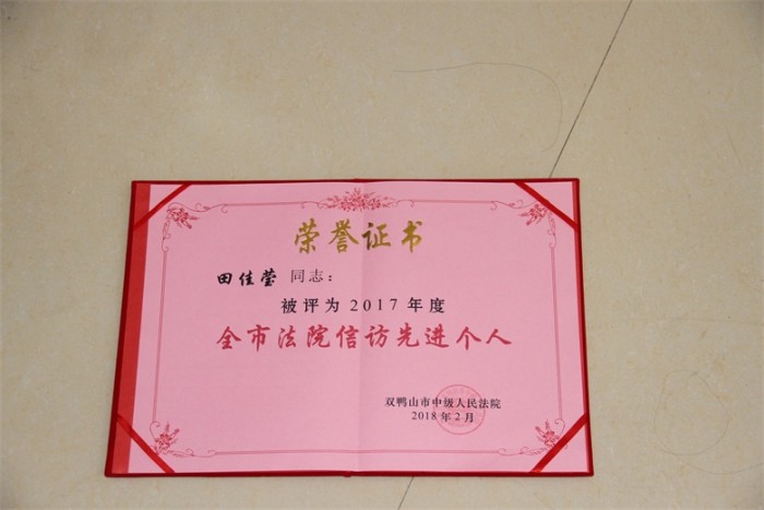 田佳莹被评为2017年度“全市法院信访先进个人”