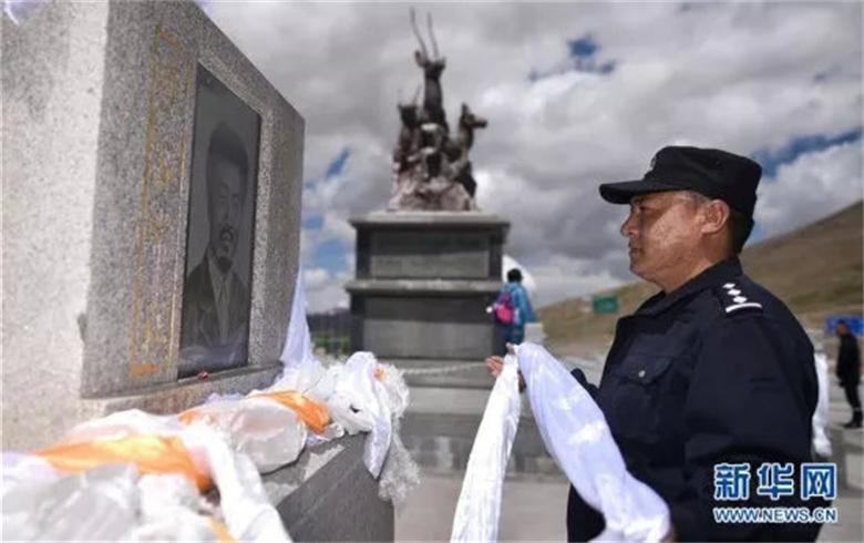 扎西向舅舅索南达杰的烈士纪念碑敬献哈达