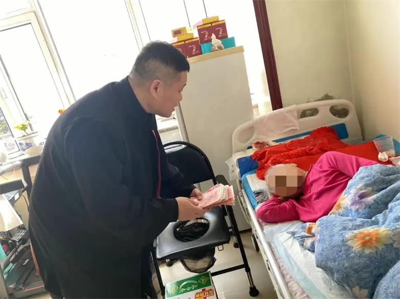调解后,怕老人见不到钱,着急上火,承办法官又督促王某某按期履行给付义务,最后在法官的见证下,在王某氏老人的床前,王某某履行了全部的给付义务。“谢谢您韩法官,我家的事儿让您费了不少心。”老人收到钱后激动的热泪盈眶,紧紧握着承办法官的手向其表达谢意。