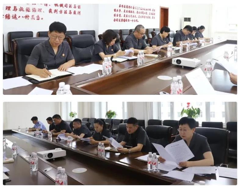 7月26日,尖山区人民法院召开党组(扩大)会议,专题学习贯彻党的二十届三中全会精神,传达上级法院有关会议精神,研究部署贯彻落实意见,党组书记、院长王桂杰主持会议并讲话,党组成员、部门负责人参加会议。