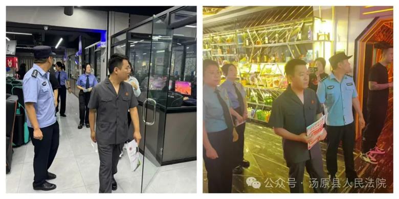 汤原县法院联合县检察院、县公安局开展了暑期“护苗”专项治理工作。联合工作小组进入到网吧、KTV、棋牌室、剧本杀、日租房等娱乐场所开展监督检查专项工作。通过核查上网登记信息、查看登记台账、抽查娱乐场所人员、检查剧本内容等方式,重点监督娱乐场所是否存在违规接纳未成年人、雇佣未成年人、存在暴力、色情刊物剧本等情况。立足少审职能和社会职能履行,通过发放暑期关爱未成年人宣传图册、以近期涉未成年人犯罪典型案例切入,提醒娱乐场所经营者和管理者要切实提高未成年人保护的思想认识,积极履行相关责任和义务。