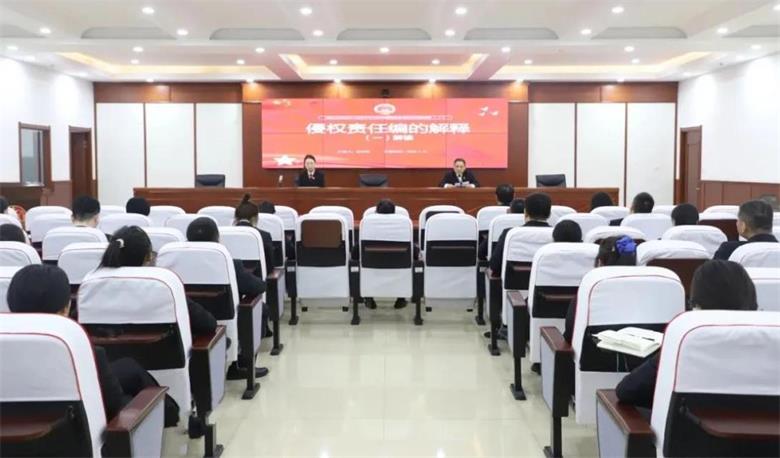 坚持党建引领,是推动业务高质量发展的根本保障。为进一步提升法院干警的审判业务能力,促进法院工作高质量发展,3月31日,尖山区人民法院组织开展业务培训,此次培训对《关于适用〈中华人民共和国民法典〉侵权责任编的解释(一)》进行详细解读。