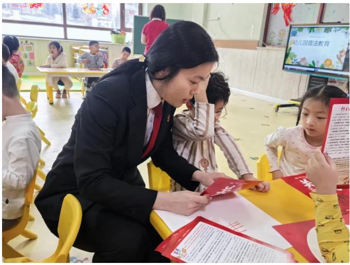 活动现场,法院干警化身“法治老师”结合幼儿认知特点,用通俗易懂的语言、生动形象的案例,围绕防拐骗、居家安全、交通安全、自我保护等重点安全知识展开讲解。通过情景互动、趣味问答的形式,将《中华人民共和国未成年人保护法》相关知识转化为孩子们听得懂、记得住的小常识,引导小朋友们树立规则意识,学会保护自己,远离危险侵害。干警还向幼儿园老师及孩子们发放关爱未成年人普法宣传单,并告诉孩子们将宣传单带回去给父母,以便更好普及家庭保护、学校保护、社会保护等相关法律知识,凝聚家校社协同护苗合力。