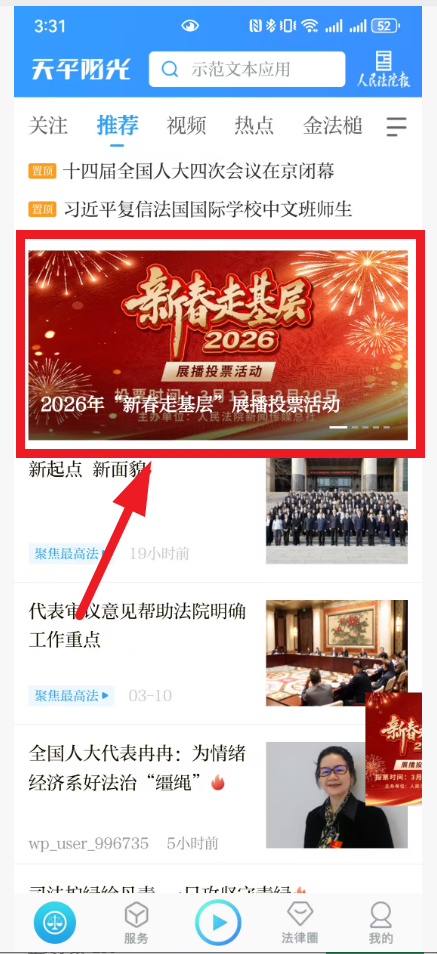 3月13日,“新春走基层”活动投票通道开启,按照活动评审规则及流程,活动组委会对征集到的作品初评后,图文类、融媒类进行网络投票。其中,尖山区法院1部入围,期待您的投票!