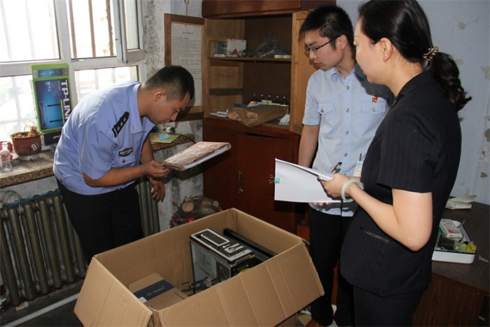 (图为执行法官董志新在与公证员对清点物品进行汇总)